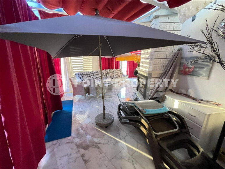 A villa located in Mahmutlar, just 950 meters from the sea coast, is offered for sale. This villa complex is the closest project to the beach. The villa is located on a private plot of 400 sq.m., where the house is located, with a total area of 230 sq.m. The house consists of two levels, where: 2 bedrooms, a living room with a kitchen area, three bathrooms, two terraces. The villa is already equipped with furniture and household appliances, as in the photographs presented. Each villa has its own private garage.