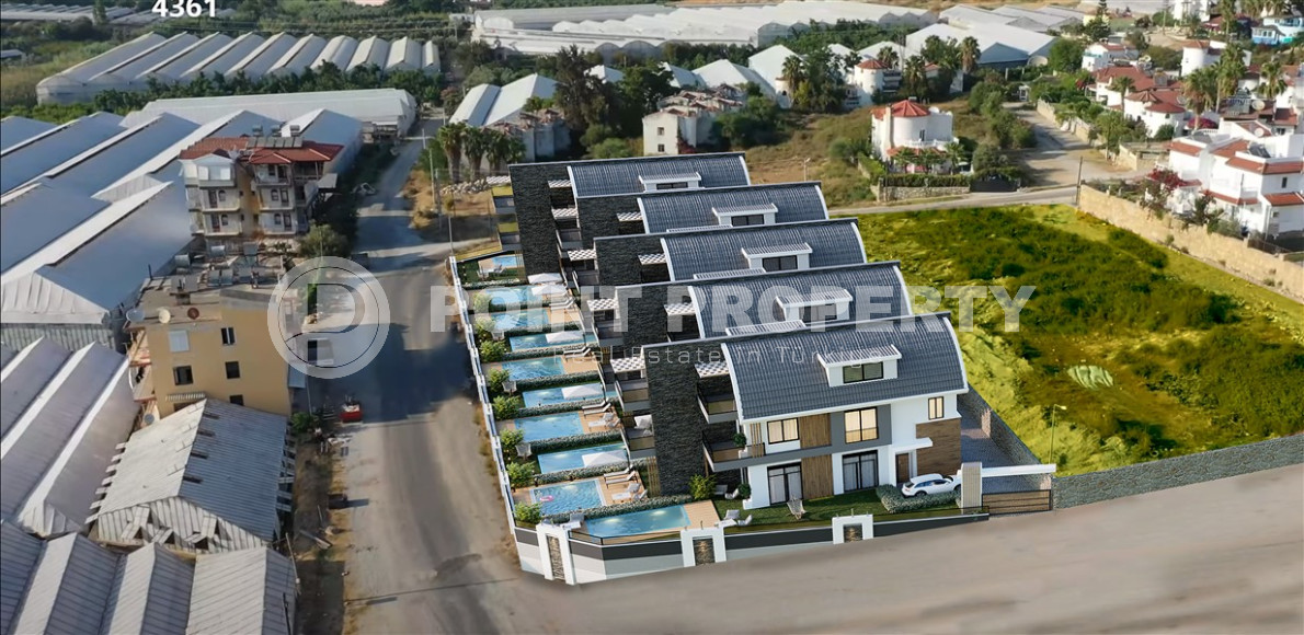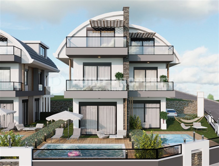 Villas with a private pool, jacuzzi and garden in the modern area of Avsallar. 700 meters to the sea.