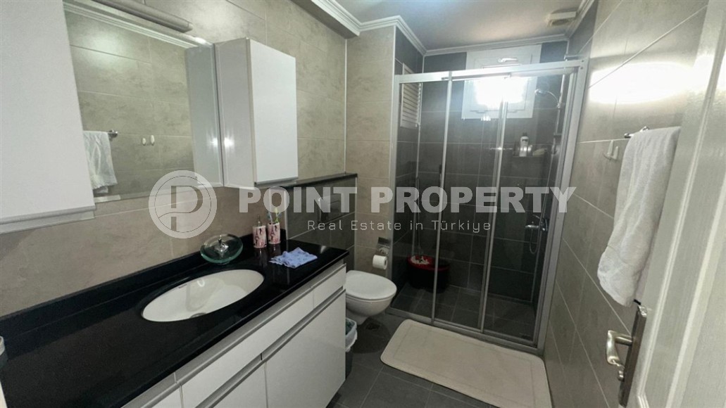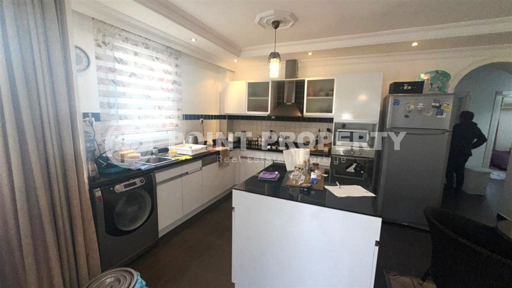 В данном разделе представлена комфортабельная квартира, которая прекрасно подходит для семьи с детьми. Расположена она на 2-м этаже в центре европейского района Аланьи - Нижняя Оба. В планировке апартаментов, общей площадью 110 м2, - американская кухня открытого типа, совмещенная с гостиной, две спальни, два санузла и два просторных застекленных балкона с видом на ухоженный внутренний двор комплекса и бассейн. Квартира - светлая и современная, с монохромной гаммой спокойных оттенков в интерьере. В центре гостиной организована комфортабельная зона отдыха, с массивным угловым диваном, набором журнальных столиков и тумбой. Ближе к кухне, оснащенной всей необходимой бытовой техникой, расположен компактный обеденный стол. Спальни укомплектованы кроватями, тумбами и гардеробными шкафами, а в прихожей имеется дополнительный шкаф для обуви и верхней одежды.