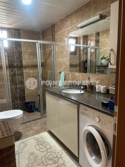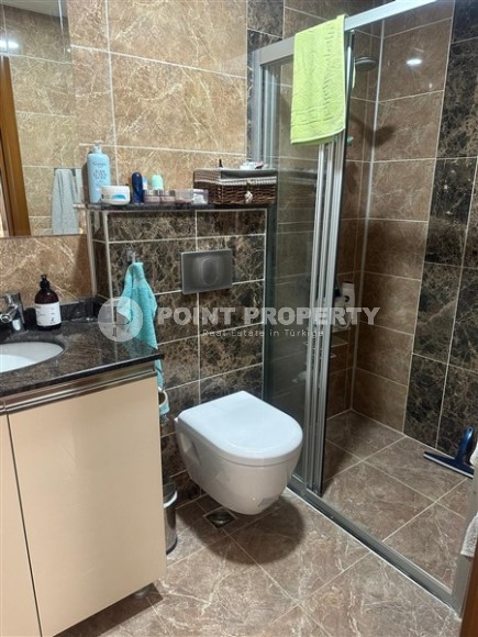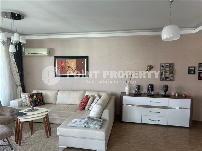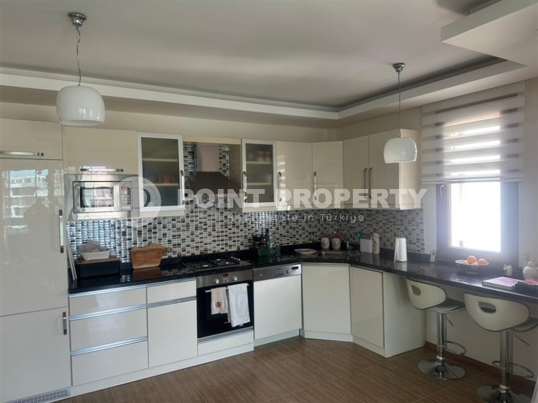 Живописный, уютный район Аланьи - Оба уже давно приглянулся не только туристам, но и жителям разных стран, для которых солнечная Турция стала вторым домом. Мягкий климат, тёплые зимы, развитая инфраструктура, гостеприимный народ, обилие зелени, множество парков, скверов и благоустроенных зон отдыха создали максимально комфортные условия для проживания круглый год. Если Вас также посещали мысли о переезде к морю, предлагаем обратить внимание на апартаменты в нескольких минутах ходьбы от центра этого прекрасного района. В портфолио компании Point Property имеется отличный вариант - просторная квартира, укомплектованная всей необходимой мебелью и бытовой техникой. Апартаменты 2+1, общей площадью 110 м2, расположены на 3-м этаже в жилом комплексе 2012 года постройки, и состоят из совмещенной с кухней гостиной, двух спален, двух санузлов, и двух открытых балконов. Дизайн квартиры спокойный и лаконичный, с преобладанием тёплых светлых оттенков в интерьере. Массивный бежевый угловой диван в гостиной гармонично сочетается с просторной открытой кухней, нежного цвета слоновой кости, оснащённой встроенным холодильником, посудомоечной машиной и духовым шкафом, а также небольшой стойкой, которая исполняет роль обеденного стола. В спальнях установлены комфортабельные кровати, комоды, трюмо и гардеробные шкафы, а в санузлах - современные душевые кабины и качественная керамика. На территории жилого комплекса, в котором находится данная квартира, к услугам владельцев оборудованы открытый, крытый и детский бассейны, фитнес клуб, сауна, игровая площадка и зелёный сад.