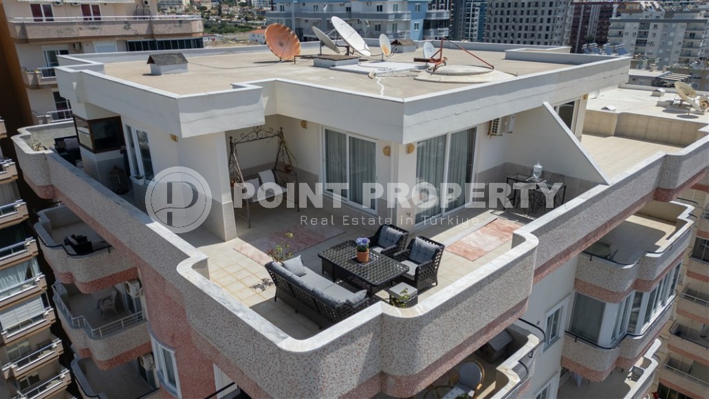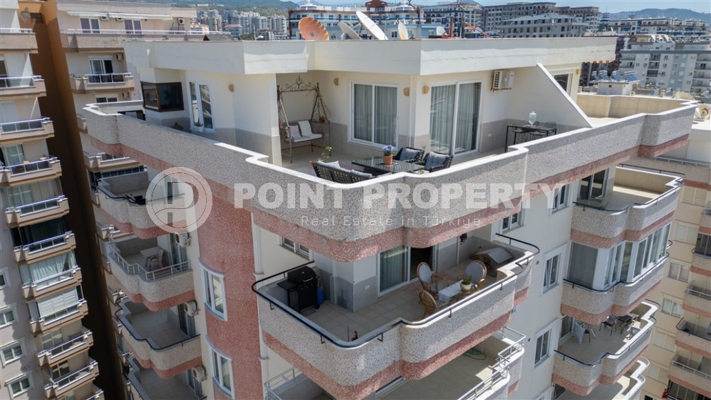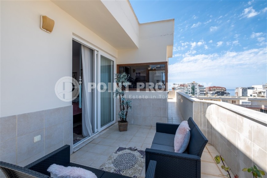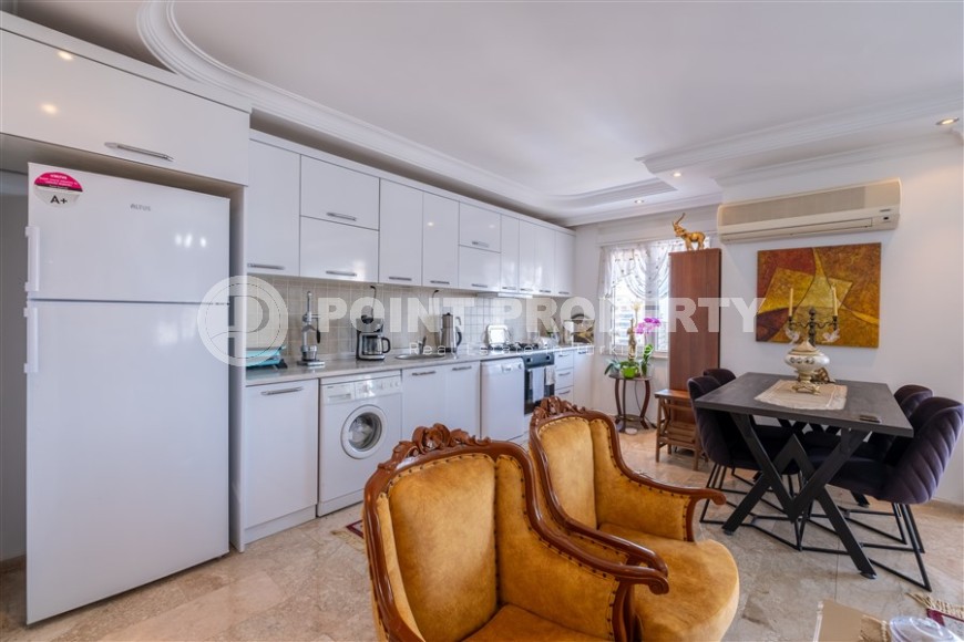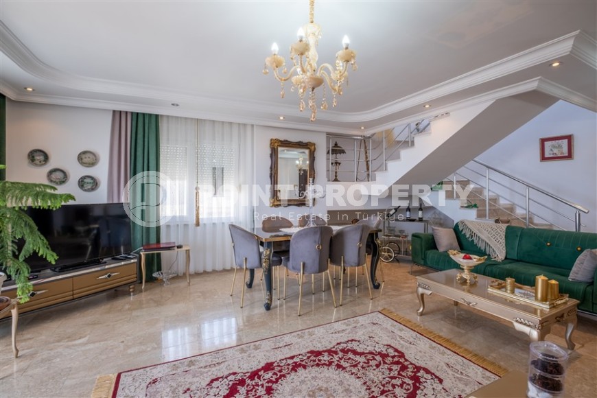 Большая двухуровневая квартира 3+1 с мебелью и бытовой техникой, в 400 метрах от моря.