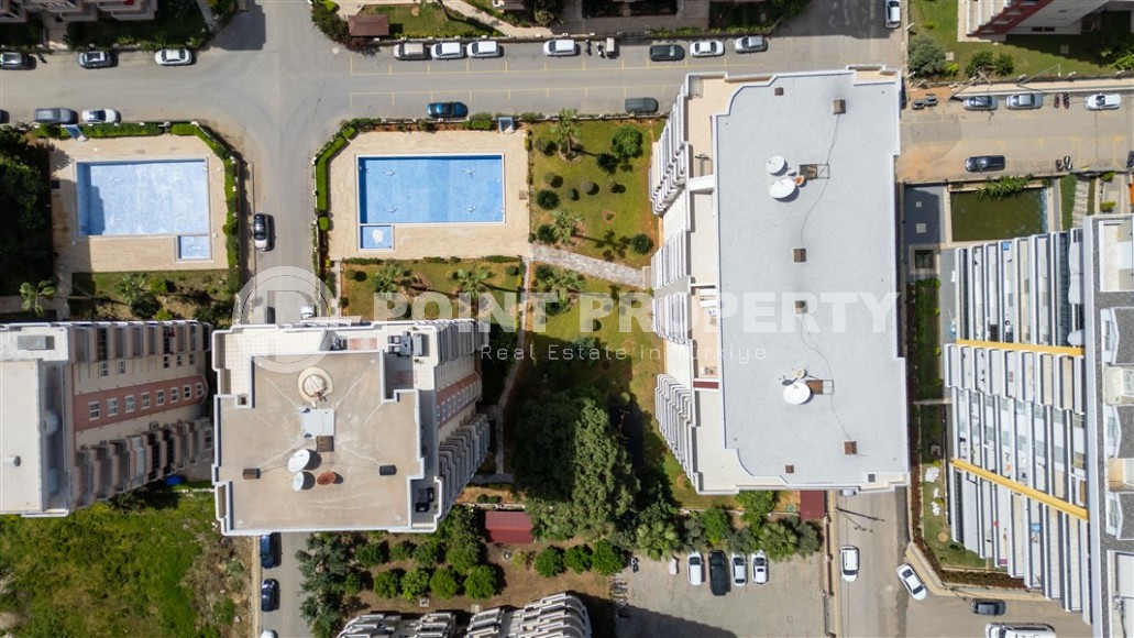 Богатая внутренняя инфраструктура комплекса представлена открытыми бассейнами для взрослых и детей, залом с тренажерами и теннисным столом, сауной, детским парком, парковкой для велосипедов и ухоженным зеленым садом.