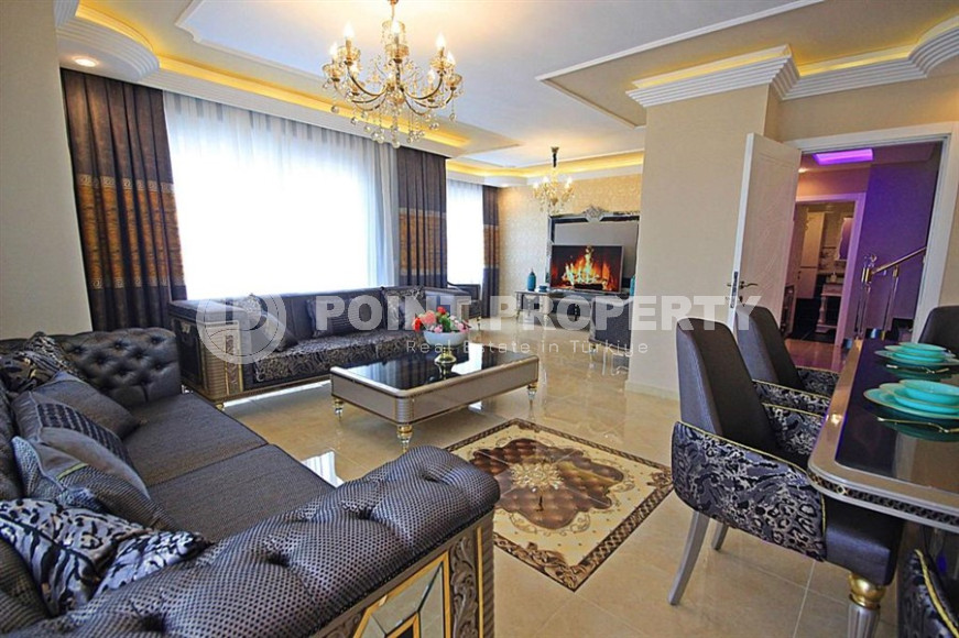 Большой видовой дуплекс 3+1 с дизайнерским интерьером в Махмутларе в 250м от Средиземного моря
