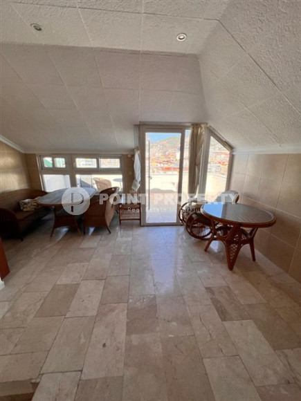Сегодня наши менеджеры нашли для вас отличный вариант, расположенный в 650 метрах от городских пляжей и в 250 метрах от основной социальной инфраструктуры Аланьи: магазинов, торговых центров, школьных учреждений, банков и прочего. Пентхаус с планировкой комнат 2+2 (две спальные комнаты, две гостиные) дополнительно имеет две ванные, два больших балкона и обзорную террасу. Общая площадь двухуровневой квартиры, выставленной на продажу с мебелью, составляет 180 м2. Жилое помещение находится на восьмом этаже с дополнительным выходом на мансарду здания, которое было построено в 2009 году. Пройдя по комнатам, новый собственник оценит большое пространство, а также качественную мебель: кровати, шкафы, плетёную мебель, угловой диван и кухонный гарнитур с бытовой техникой возле обеденного стола. Все необходимое для вашего комфортного проживания здесь имеется в достаточном количестве.