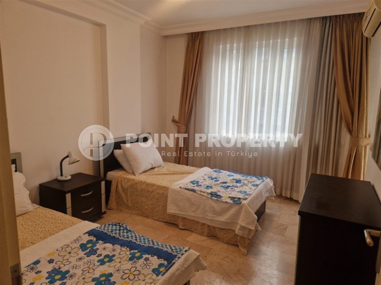 В центре популярного Средиземноморского курорта - Аланья, в современном микрорайоне Гюллер Пынары выставлена на продажу квартира, которая прекрасно подходит как для постоянного проживания или проведения летних отпусков, так и для успешной сдачи в аренду. Просторная для планировки 2+1, общей площадью 120 м2, она состоит из кухни открытого типа, совмещенной с гостиной, двух спален, двух санузлов, оснащенных душевой кабиной и ванной, и двух балконов с видом на улицы города. Квартира - светлая и универсальная, с лаконичным дизайном и традиционными теплыми оттенками в интерьере. Гостиная укомплектована мягкими диванами, журнальным столиком, комодом и обеденным столом. Компактная кухня оснащена холодильником, стиральной машиной, сенсорной поверхностью и духовым шкафом. В спальнях установлены удобные кровати, тумбы и трюмо, а на балконе имеется набор практичной садовой мебели.
