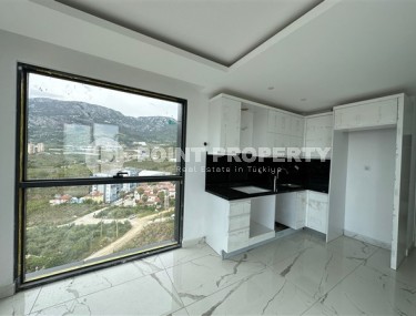 На большой площади в 70м² разместились большая прихожая со шкафом для верхней одежды, одна спальня с необходимой мебелью и просторная гостиная, объединенная с кухней открытого типа. В салоне два больших дивана позволят с комфортом разместиться перед телевизором. Кухня укомплектована бытовой техникой и рядом с ней установлена обеденная группа. Большая по размерам ванная комната укомплектована качественной сантехникой, стиральной машиной и накопительным бойлером. Фишкой квартиры является большой угловой балкон, на который есть выход из обеих комнат. Гостиная ориентирована на восток, а спальня на север, поэтому с балкона вы увидите и прекрасное Средиземное море и великолепные Торосские горы.