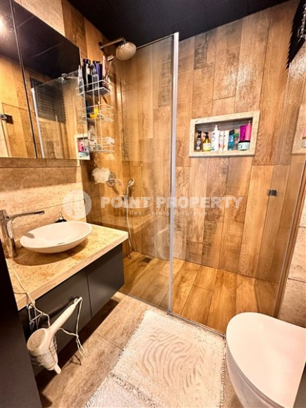 Всего в 100 м от пляжа и благоустроенной набережной в одном из самых престижных районов Алании Кестель, на продажу выставлены двухуровневые апартаменты 2+1с собственным садом. Квартира с дизайнерским ремонтом общей площадью 170 м2 расположена на юго-западной стороне. На первом этаже расположена большая гостиная, совмещенная с кухней и санузел с душевой кабиной. В зоне коридора имеются просторные шкафы и ниша под лестницей, куда можно спрятать чемоданы, всевозможные бытовые предметы и т.д. Кухня выполнена в черном цвете, из бытовой техники имеется два холодильника, один из которых встроенный, посудомоечная машина, электрическая варочная поверхность, вытяжка, духовка и микроволновая печь, а стена в обеденной зоне декорирована натуральным камнем. Также, на кухне установлен фильтр для питьевой воды.
