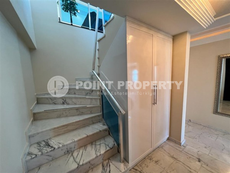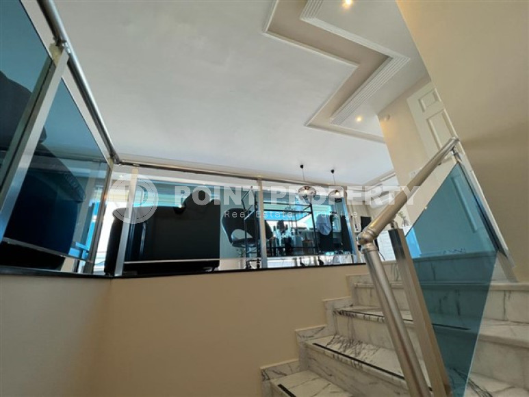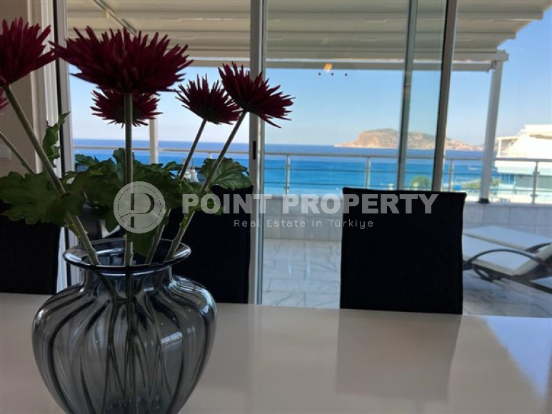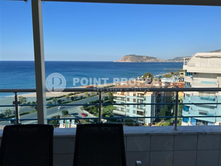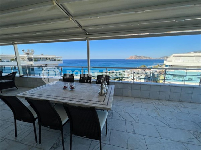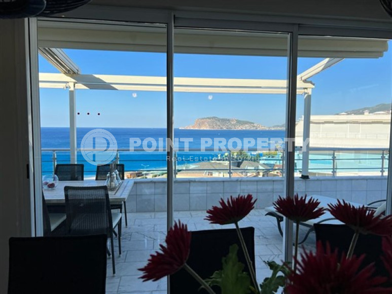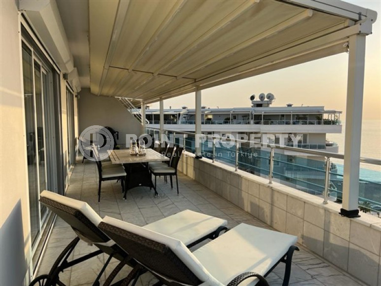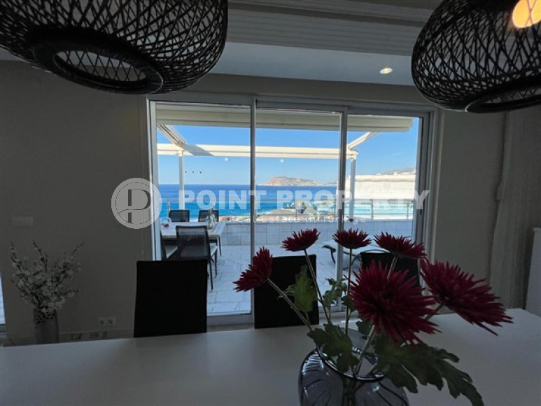 Район Оба. Дуплекс 3+1, 208 м², 2021 года, у самого моря, до центра 100 м, полностью меблирован, с большой террасой и видом на море.