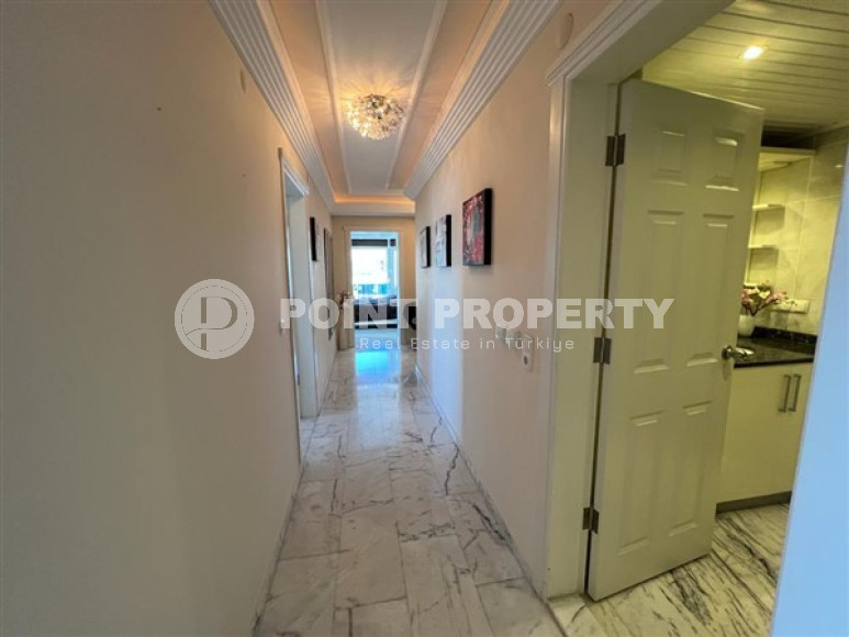 Апартаменты, площадью 221м² расположились на 10-11 этаже. В квартире имеются: просторный салон, объединенный с вместительной кухней американского типа. В зоне отдыха установлена элегантная мягкая мебель, расположившись на которой можно любоваться морской гладью или устроить вечер в кругу семьи и друзей с видом на закат. Зона кухни несколько отделена от салона и располагается в отведенной ей нише, имеет вместительный гарнитур с барной стойкой, много мест для хранения кухонной утвари и полный комплект бытовой техники. Гостиная обладает настолько большими размерами, что позволило разместить большую обеденную зону на 8-10 персон. Четыре спальни больших размеров укомплектованы качественной и функциональной мебелью. Три ванные комнаты полностью укомплектованы. Из просторной прихожей, со шкафами для верхней одежды, удобная широкая лестница ведет на второй этаж дуплекса. Потрясающим дополнением пентхауса является наличие двух просторных балконов (один из которых остеклен) на нижнем этаже дуплекса с видом на Средиземное море, горы Торос и Аланийский полуостров со старинной крепостью. А огромная терраса верхнего этажа никого не оставит равнодушным. Балконы и терраса укомплектованы стильной садовой мебелью. Квартира ухоженная, продается с отличным ремонтом, качественной мебелью и бытовой техникой известных производителей. Предметы декора, текстиль и аксессуары – тоже входят в стоимость.