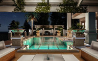У виллы предусмотрена частная территория с видеонаблюдением, на которой будут расположены бассейн с джакузи, сад с элементами ландшафтного дизайна, зона отдыха, парковка для двух автомобилей.