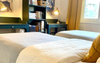 Планировка 3+1 на площади 145 м² подразумевает три спальни, объединённую с гостиной кухню, два санузла и два балкона. Балконы выходят на зеленую территорию комплекса. Квартира находится на 1 этаже здания 2010 года постройки. Предоставлена на продажу вместе со стильной мебелью и техникой, которую вы видите на фотографиях.