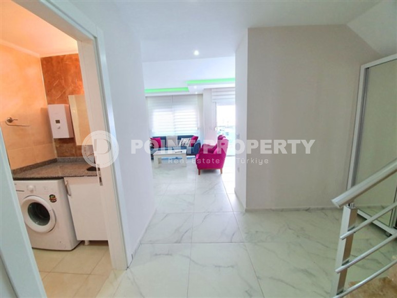Двухуровневая квартира с отличным ремонтом, общей площадью 110 м2, полностью готовая к проживанию в районе Махмутлар.