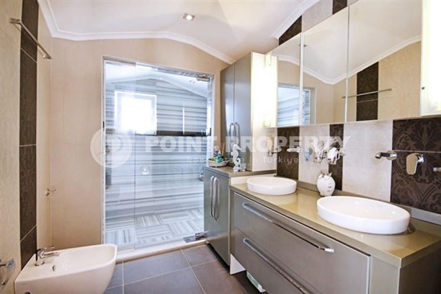 Стильная и просторная вилла 3+1 с чистовой отделкой и системой «умный дом», расположенная в престижном районе Конаклы, в нескольких шагах от пляжа.