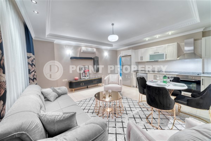 Комфортабельная стильная квартира 2+1 в полутора километрах от пляжа в престижном районе Аланьи Оба.