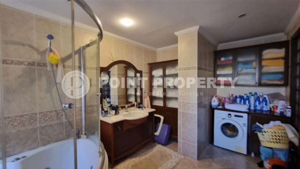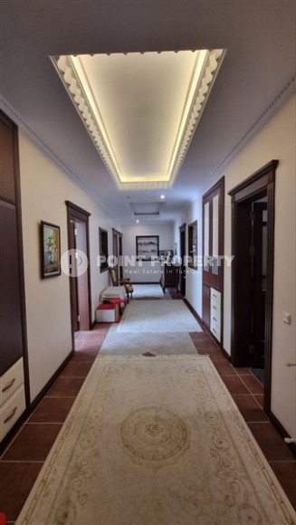 Представляем вашему вниманию прекрасные, благоустроенные апартаменты планировкой 4+1, общей площадью 500м2, расположенные на 1-м этаже жилого комплекса 2000 года постройки в центре города Аланья. В планировку квартиры входит отдельная кухня, салон, четыре спальные комнаты, три санузла и два балкона. В кухне установлен кухонный гарнитур представляющий единый ансамбль, в составе которого есть все необходимые элементы для обустройства удобного и функционального размещения необходимой утвари, есть качественная бытовая техника, обеденный стол. Большой салон оборудован мягкими диванами, креслами, журнальными столиками, телевизором с тумбой под ним дополнительной корпусной мебелью с зонами для хранения предметов интерьера открытого и закрытого типов, кондиционером, окна и двери с выходом на балкон обрамлены легкими занавесками и шторами из светонепроницаемой ткани. Спальные комнаты оборудованы разным набором корпусной и мягкой мебели, кондиционерами. В санузлах есть необходимый набор мебели, качественное сантехническое оборудование, джакузи, душевая кабина. Балконы с выходом на инфраструктуру района и зеленый сад, можно оборудовать как дополнительные зоны отдыха.