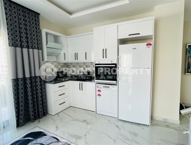В центральной части района Оба предлагается уютная квартира 1+1 общей площадью 65 м². Жилье расположено на втором этаже современного комплекса 2011 года постройки. Планировка включает одну спальню, просторную гостиную с кухней американского типа, одну ванную комнату и балкон.