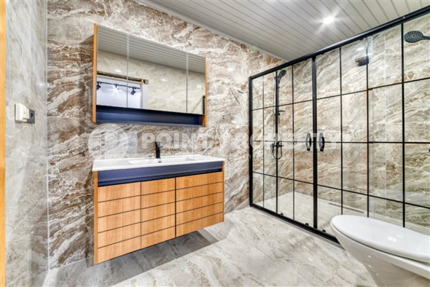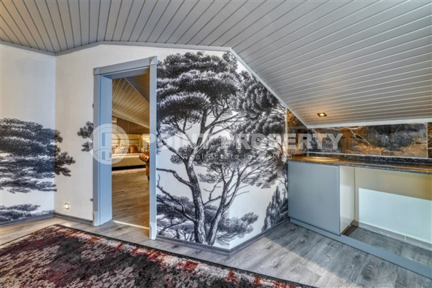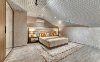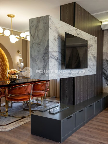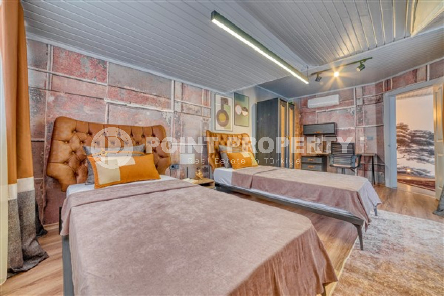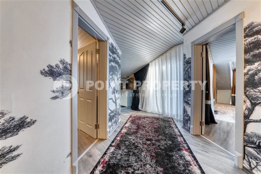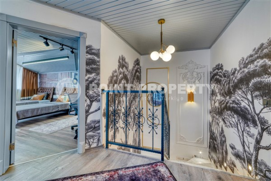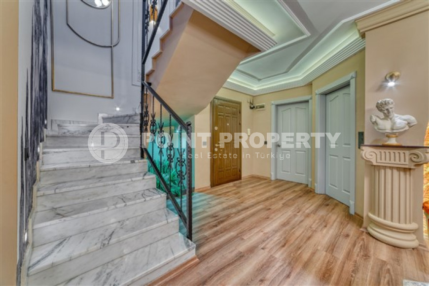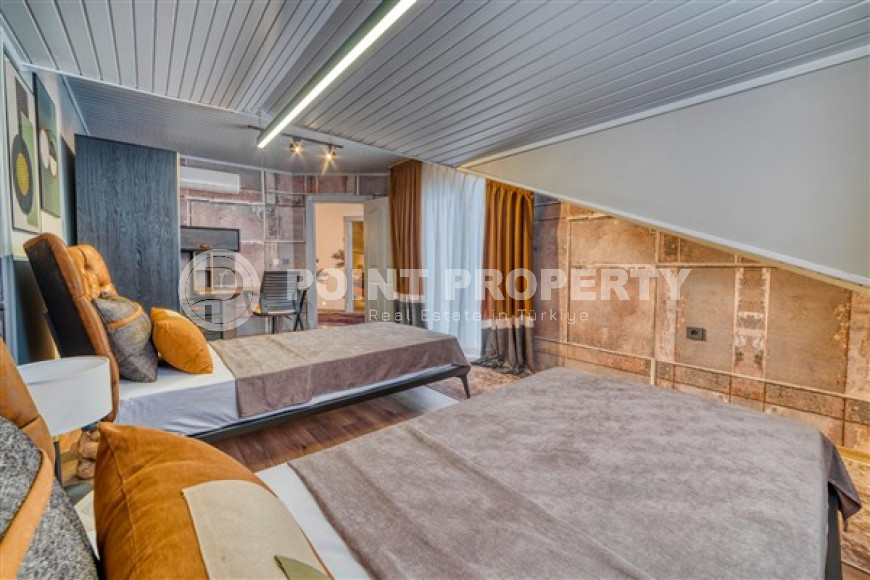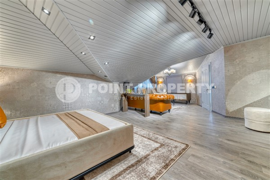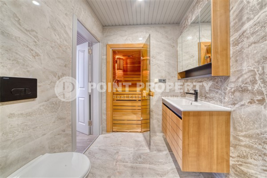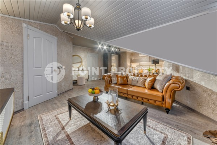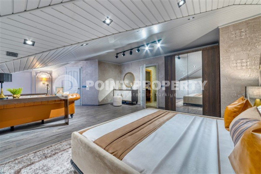 В одном из блоков комплекса продаётся роскошный дуплекс 3+1 от хозяина. Двухуровневая квартира площадью 225 м² с выходом на собственную террасу отделана преимущественно дорогими природными материалами и обставлена качественной мебелью. Вся обстановка, которая присутствует на фото, включена в стоимость объекта.