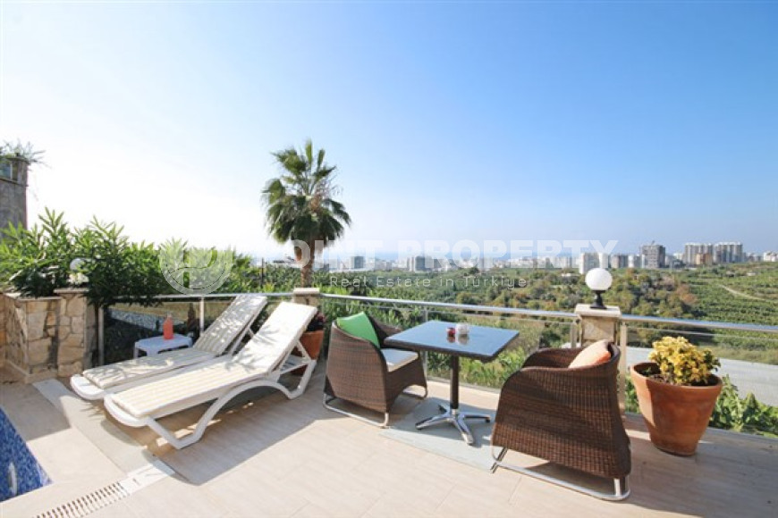 Основная недвижимость в этой части города представлена малоэтажными комплексами, в том числе и компактными виллами, расположенными на некотором удалении от моря. Сегодня наши менеджеры компании Point Property рады предложить покупателям изящную четырёхкомнатную виллу, полностью укомплектованную мебелью и имеющую общую жилую площадь 205 м2. Помимо спален, гостиной с кухней, окружённых арочными переходами, вилла имеет две дополнительные ванные комнаты, два балкона и просторную террасу с роскошным видом на окрестности. Дуплексная вилла оснащена диванами, удобными кроватями, шкафами, кухонным угловым гарнитуром с техникой, садовой мебелью на балконах и гидромассажной ванной в санузлах. Все необходимое имеется здесь в достаточном количестве для комфортабельного проживания вас и ваших членов семьи.