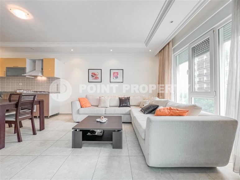 Светлая квартира 2+1, 80 м², в центре Аланьи, всего в 150 м от пляжа Клеопатры. Просторные комнаты, отдельная кухня, мебель в комплекте.