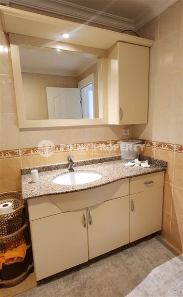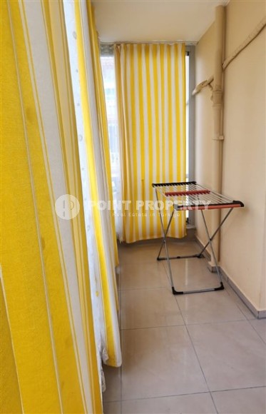 Современная квартира 1+1, 56 м², в новом комплексе в центре Аланьи. Просторный балкон с приятным видом на море. В комплексе есть бассейн, сауна, хамам, теннисный корт и детская площадка. До моря – 500 метров.