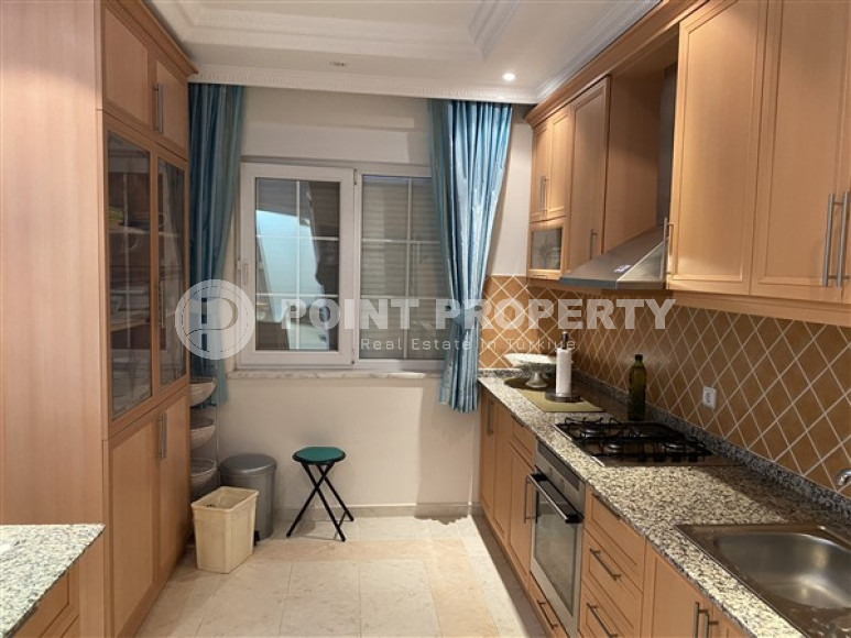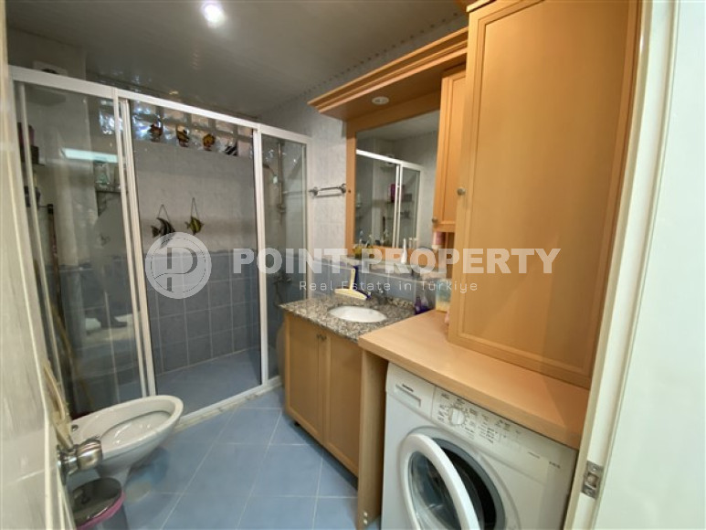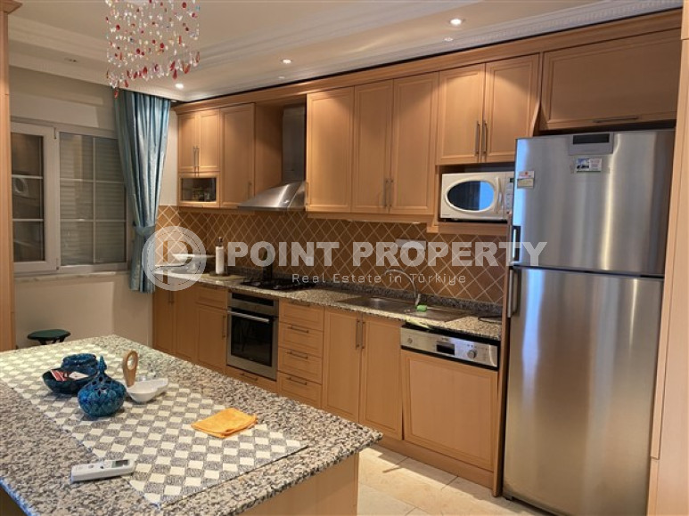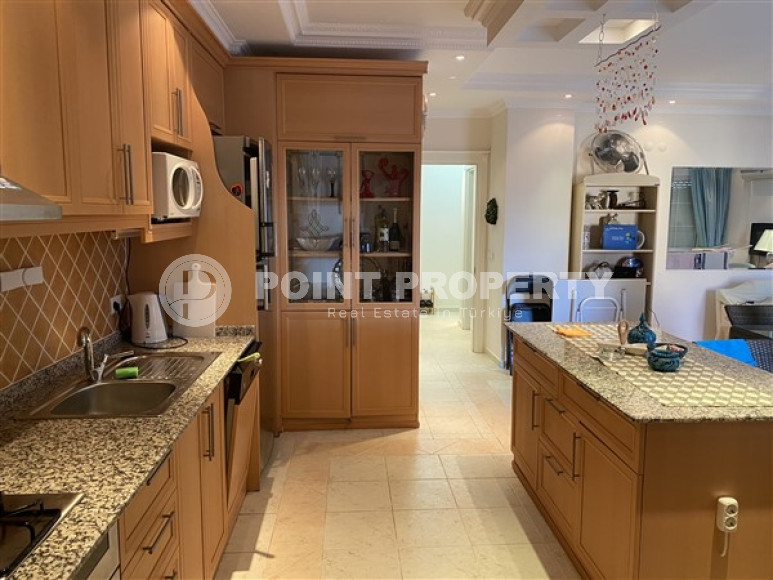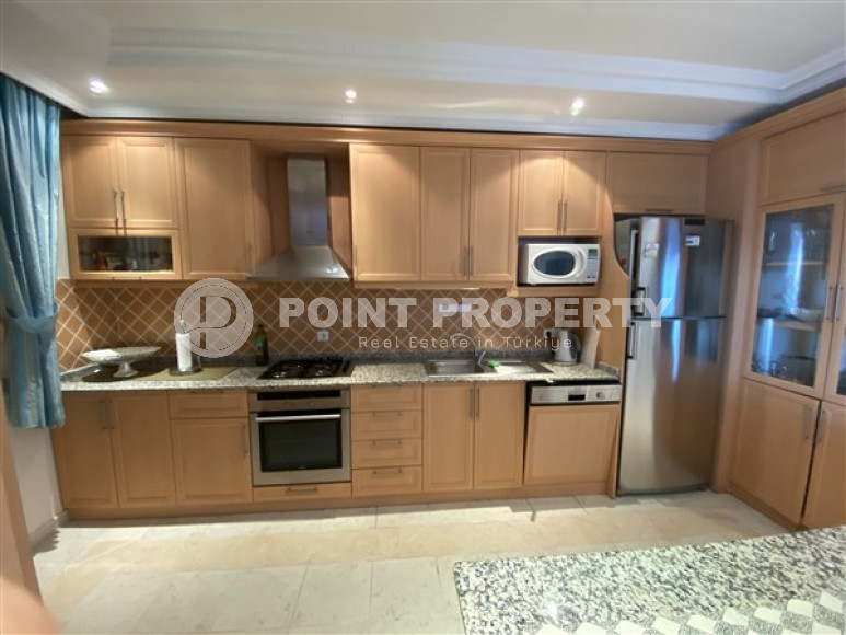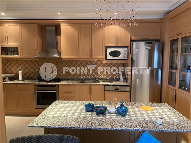 Собственником выставлена на продажу трехкомнатная квартира планировки 2+1, общей площадью 110м² в центре Алании. Апартаменты расположились на втором этаже резиденции 2013 года постройки, состоящей из одного здания. В планировку входит большая прихожая, которая все реже встречается при современных стандартах строительства, просторная гостиная, совмещенная с вместительной кухней открытого типа, две спальни, две ванных комнаты, укомплектованных мебелью и сантехникой и два балкона, которые, при желании, можно остеклить. В салоне установлен комплект мягкой мебели. Зона кухни несколько отделена от зоны отдыха барной стойкой, которая увеличивает рабочую поверхность и может быть уютным местом для завтраков. Спальни меблированы. Один из балконов оборудован стационарным барбекю и укомплектован садовой мебелью. С балконов открывается отличный вид на таинственные и могущественные горы Торос. Квартира продается с мебелью и бытовой техникой, как представлено на фото.