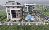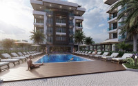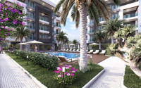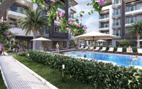 Квартира с двумя спальнями, 75м², в резиденции с бассейном на этапе строительства в районе Оба, Аланья