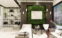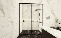 Внутренняя отделка апартаментов представлена гранитным напольным покрытием, стальной входной дверью, двойными остекленными оконными рамами, лаковым кухонным гарнитуром, душевой кабиной и высококлассной сантехникой.