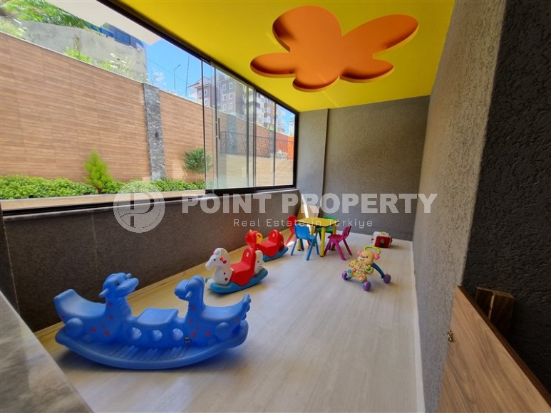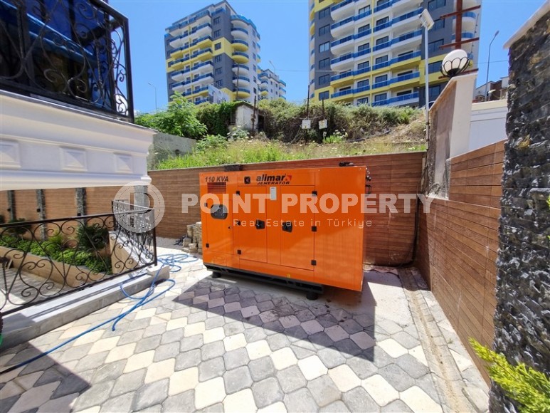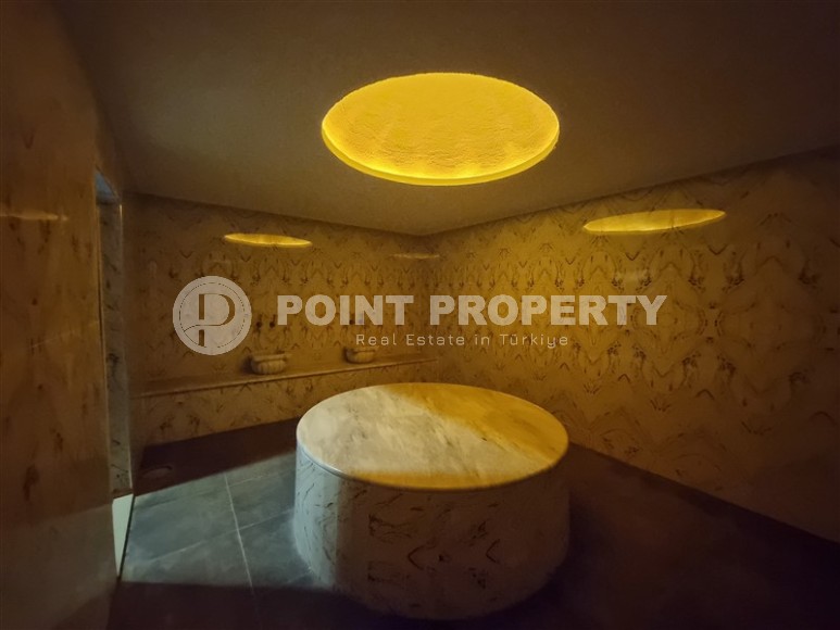 Жилой комплекс, в котором находятся апартаменты, предлагает к услугам владельцев бассейн, фитнес клуб, сауну, хамам, парную, кинотеатр, лобби, детскую площадку, беседку для отдыха в саду и игровую комнату. Находится резиденция в нескольких минутах ходьбы от центра района Махмутлар, где сосредоточены супермаркеты, кафе, рестораны, отделения банков и связи, остановки общественного транспорта, и в 500 метрах от пляжа и набережной.