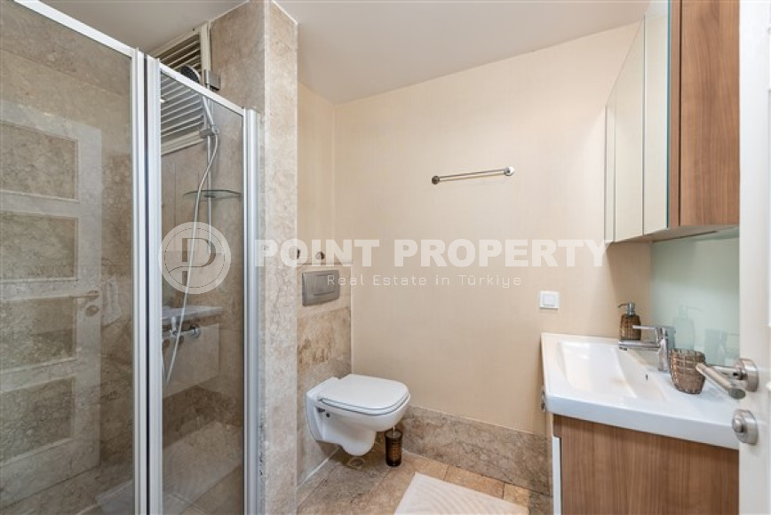 Продается меблированная квартира с двумя спальнями в комплексе с инфраструктурой пятизвёздочного отеля. Резиденция находится в красивом районе Алании – Джикджилли, в 500м от центра района. Сам район хорошо развит, городская инфраструктура и транспортное сообщение работают как часы. Этот район, действительно идеально подходит для тех, кто мечтает жить в спокойном месте и, в тоже время, не хочет уезжать далеко от центра. В пешей доступности от комплекса расположены: супермаркеты, пекарни, много всевозможных кафе и ресторанов. В районе есть школы, аптеки, салоны красоты, множество небольших маркетов, где всегда можно купить продукты первой необходимости. По субботам в районе разворачивается фермерский рынок.