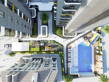 На прилегающей к дому территории к услугам жителей разбит зелёный сад и имеется открытый бассейн. Все необходимые объекты городской инфраструктуры - супермаркеты, торговые комплексы, салоны красоты, фитнес клубы, кафе, рестораны, детские образовательные учреждения, частные и государственные клиники, отделения банков и остановки общественного транспорта, расположены в непосредственной близости от квартиры . А от роскошного пляжа Клеопатры, с золотистым прохладным песком, кристально чистой водой и живописной прогулочной набережной, с детскими и спортивными площадками, велодорожками, лавочками и беседками, апартаменты отделяет всего 650 метров.