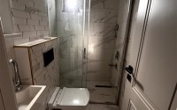 Квартира, общей площадью 90 кв.м. находится на 3 этаже, состоит из двух спален, двух ваннах комнат и большого балкона. Апартаменты уже укомплектованы новой мебелью и бытовой техникой, как на представленных фотографиях. С балкона открывается красивейший вид на горы.