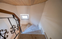 Трехэтажная вилла имеет планировку 3+1, общая площадь составляет 150м². На входном этаже расположена одна комната с выходом на террасу, с которой можно пройти в сад, одна ванная комната с кладовой и прихожая. Здесь находится широкая гранитная лестница, ведущая на верхние этажи. На первом этаже находится уютный салон с действующим камином, объединенный с кухонной зоной. Кухня несколько отделена от зоны отдыха, имеет вместительный гарнитур с комплектом бытовой техники и барную стойку. Из кухни есть выход на свой балкон. Их салона можно выйти на другой, большой, балкон со стационарным барбекю и большой обеденной зоной. На этом же этаже находится вторая ванная комната. На втором этаже находятся три спальни, каждая с выходом на балкон, и третья ванная комната. На мансардном этаже есть пустое помещение, которое можно использовать по своему усмотрению. Ванные комнаты укомплектованы необходимой сантехникой. Два больших балкона, ориентированные на юго-восток выходят на ухоженный сад, два балкона, ориентированные на северо-запад – подарят виды, виднеющихся вдалеке, гор Торос. С обоих террас входного этажа есть выход в сад, где можно обустроить уютные зоны отдыха. Вилла меблирована и укомплектована, продается в том виде, как представлено на фото.