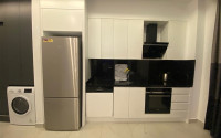 Небольшая квартира 1+1, общей площадью 59 м2, находится на 1-м этаже в доме 2021 года постройки и продается с новой мебелью и современной бытовой техникой. В планировке – совмещенная с кухней гостиная, спальня, санузел и балкон, выходящий во внутренний двор. Дизайн апартаментов простой и лаконичный, в интерьере сочетаются светлые и благородные серые оттенки. Современная кухня оснащена вместительным холодильником с морозильной камерой, духовым шкафом, стиральной и посудомоечной машинами. В стильном санузле – ванная и качественная керамика, в салоне – комфортабельный мягкий диван, а в спальне – большая кровать. Апартаменты полностью готовы к проживанию, подключены все коммуникации, а в комнатах установлены кондиционеры.