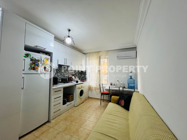 Портфолио лицензированного агентства недвижимости Point Property пополнило выгодное предложение - комфортабельная квартира с мебелью и бытовой техникой, в самом центре популярного района Аланьи - Оба, по очень привлекательной цене. Квартира 1+1, общей площадью 40 м2, она расположена на 2-м этаже в доме 2007 года постройки, и состоит из отдельной кухни, салона, спальни, оснащенного душевой кабиной санузла и балкона. Квартира - светлая и уютная, с теплыми оттенками в интерьере и мягким точечным освещением. В центре гостиной, с панорамными окнами, организована комфортабельная рекреационная зона, с массивными диванами, оригинальным журнальным столиком и тумбой. В кухне установлены компактный обеденный стол, диван и гарнитур, оснащенный холодильником, стиральной машиной и газовой плитой. Спальня укомплектована большим угловым диваном, так что в квартире есть все необходимое для комфортного проживания.