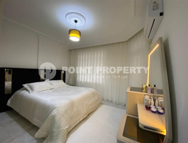 Гостиная объединена с кухней открытого типа, установлен современный кухонный гарнитур, продуманное зонирование. Две спальни полностью меблированы, на полу керамогранит, что облегчает уход и создаёт современный стиль. Один полностью оборудованный санузел и балкон с видом на окрестности и море обеспечивают комфортное проживание.