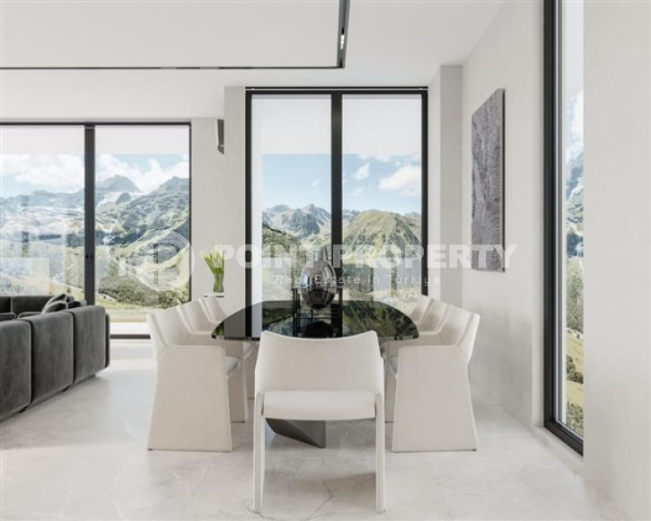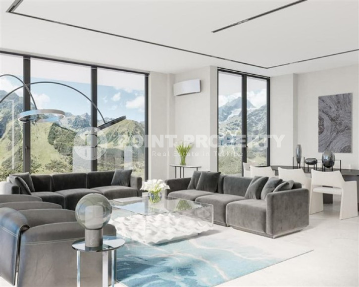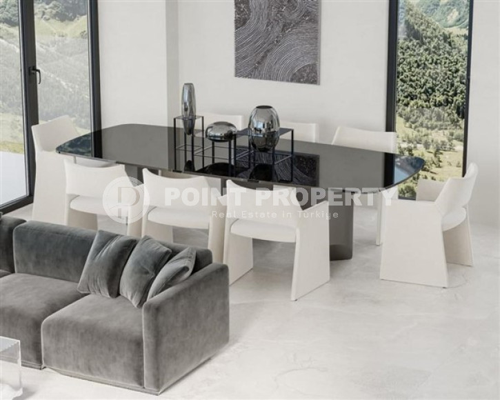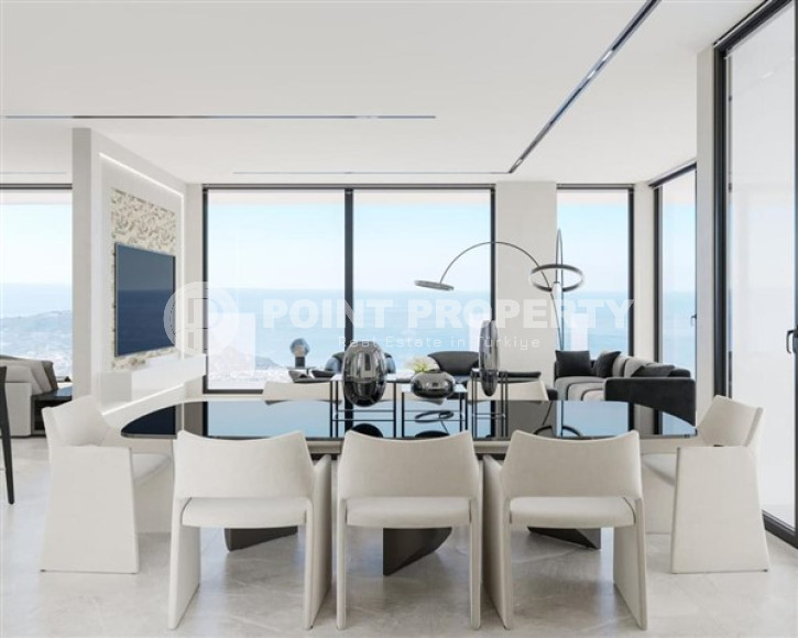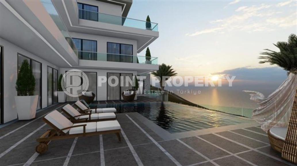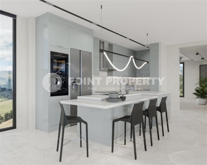 Шикарная просторная вилла в завораживающей панорамой на всю Алании, хозяином которой Вы можете стать. Собственная территория, качественная постройка, собственный инфинити бассейн и вся Алания у Ваших ног. Это все совмещает в себе новая вилла планировки 5+2 и чистой! жилой площадью 680м2 и земельным участком в 1100м2. Данная планировка виллы предполагает наличие пяти спальных комнат с гардеробными, одной отдельной кухни и одной гостиной, которая совмещена со второй кухней и обеденной зоной, семь санузлов две больших террасы и одну просторную веранду. Также в планировку входит личная сауна с хамамом и зал для занятий спортом. В целом вилла имеет Г-образную форму и состоит из трех этажей. Вилла продается с готовым качественным ремонтом с использованием итальянских и немецких материалов. По всей вилле установлена система подогрева полов и центральная система кондиционирования. Также Вы можете пользоваться уже установленной системой «умный дом» и контролировать работу техники и электричества в вилле находясь далеко от нее.