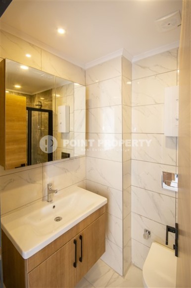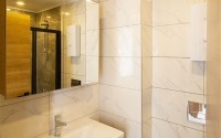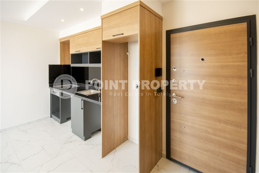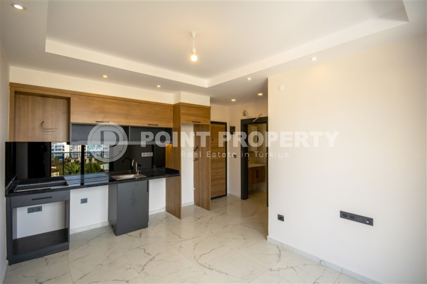 Небольшие апартаменты 1+1, общей площадью 50 м2, состоят из совмещенной с кухней гостиной, спальни, санузла и балкона. В квартире уже завершены основные ремонтные работы - установлены подвесные потолки с точечным освещением, качественное керамическое напольное покрытие, входные и межкомнатные двери, стильная сантехника и кухонный гарнитур, с секциями, для бытовой техники. Новым владельцам остается лишь оформить дизайн на свой вкус, а решить такие бытовые вопросы, как заказ мебели или подключение коммуникаций, помогут опытные сотрудники отдела послепродажного сервиса компании Point Property.