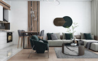 Апартаменты будут сданы с полной чистовой отделкой, встроенным стильным кухонным гарнитуром с кухонной бытовой техникой (варочная поверхность, вытяжка, духовой шкаф), укомплектованными ванными комнатами.