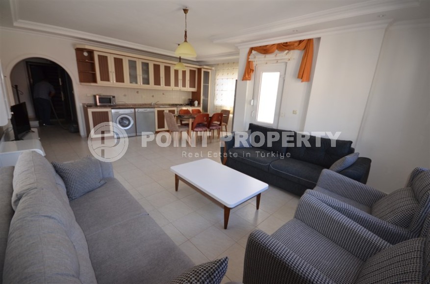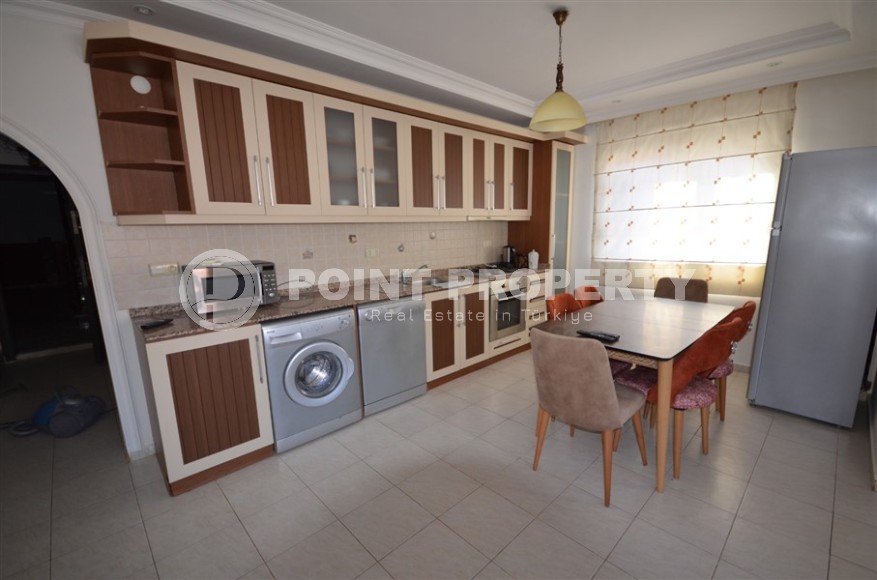 Если вы планируете переехать всей семьей на Средиземноморское побережье Турции, рекомендуем обратить внимание на комфортабельный, спокойный район города - Нижняя Оба. Тут удачным образом сочетаются развитая инфраструктура, живописные ландшафты, ухоженные парки и скверы, роскошный пляж, с прогулочной набережной, и лёгкая курортная атмосфера. В самом центре этого благоустроенного района выставлена на продажу большая двухуровневая квартира, общей площадью 190 м2, с совмещённой с кухней гостиной, четырьмя спальнями, тремя санузлами, двумя балконами и двумя открытыми террасами, с видом на город и зелёные горные вершины. Дизайн квартиры простой и лаконичный, с преобладанием белого цвета в интерьере и минимумом ярких акцентов, что позволяет новым владельцам с лёгкостью придать апартаментам индивидуальность и собственный стиль. Дуплекс полностью укомплектован мебелью и бытовой техникой - в гостиной установлены комфортабельные диваны, кресла, журнальный столик, тумба и обеденный стол; в спальнях - мягкие кровати, гарнитуры и вместительные гардеробные шкафы, а в одной из комнат организована дополнительная зона отдыха, с удобным угловым диваном. Классическая кухня оснащена холодильником, стиральной и посудомоечной машинами и духовым шкафом, а санузлы укомплектованы современными душевыми кабинами.