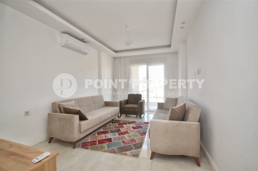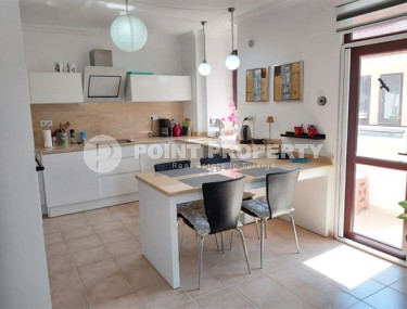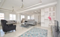 Портфолио лицензированного агентства недвижимости Point Property пополнила квартира, к преимуществам которой относятся: прекрасные видовые характеристики, удобная локация в трех минутах ходьбы от пляжа и центра популярного района Аланьи - Махмутлар, большая общая площадь - 180 м2, современный дизайн, укомплектованность всей необходимой мебелью и бытовой техникой. Расположена данная квартира на 8-м этаже с мансардой в резиденции 2017 года постройки и состоит из американской кухня, совмещенной с гостиной, двух спален, прачечной, трех санузлов, двух балконов и панорамной террасы с видом на город и море. Квартира - светлая и атмосферная, с монохромной гаммой спокойных оттенков в интерьере. Расположенная на 2-м этаже гостиная визуально разделена на зону кухни, с обеденным столом и комодом, и салон, с мягкими диванами, креслом, журнальным столиком, тумбой и оригинальным шкафом с открытыми и закрытыми секциями. Практичная угловая кухня оснащена холодильником, посудомоечной машиной, варочной плитой и духовым шкафом. В одной из спален установлены большая кровать, трюмо и вместительный гардеробный шкаф, а во второй организована зона отдыха с комфортабельными диванами и массивным креслом.