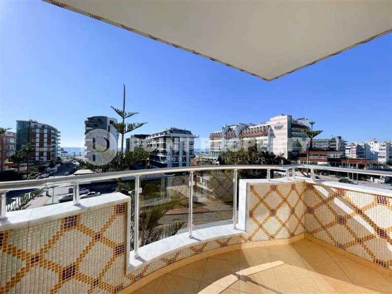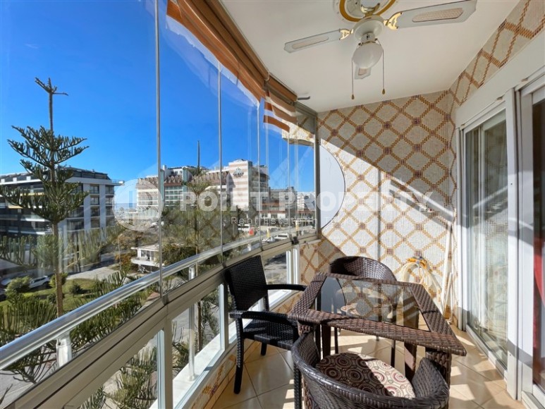 Просторная меблированная квартира 2+1 с двумя балконами и видом на море, в комплексе с бассейнами и охраной, на первой береговой линии и всего в 250 м от центра района.