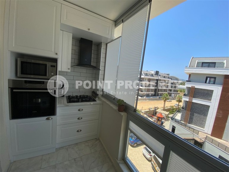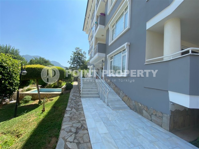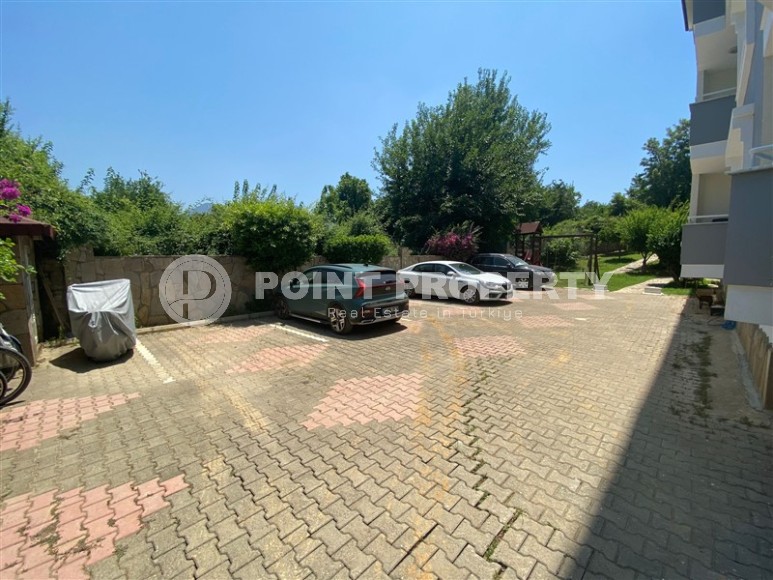 Дом, в котором находится квартира, был построен в 2010 году, и окружен большим, ухоженным тенистым садом. К услугам жителей предоставлены такие дополнительные опции, как бассейн, зал с тренажерами и теннисным столом, сауна, детский парк, зал переговоров, и открытая парковка. Расположен комплекс в километре от центра района Оба, с супермаркетами, фермерскими лавками с экологически чистыми продуктами, кафе, ресторанами, отделениями банков, связи и почты. А расстояние от квартиры до длинного песчаного пляжа, который по праву считается одним из самых чистых и ухоженных на побережье, составляет три километра.