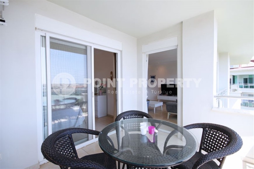 Вашему вниманию представлена просторная двухуровневая квартира 3+1, общей площадью 150 м2, которая прекрасно подойдет для проживания большой семьи. Расположена она на 3-м этаже с мансардой, в жилом комплексе 2011 года постройки, и имеет в планировке совмещенную с кухней гостиную, три спальни, два санузла, оснащенных душевой кабиной и джакузи, два балкона и панорамную открытую террасу. Дуплекс светлый и современный, в интерьере преобладает белый цвет, а яркими акцентами являются красные диваны в комнатах, и незначительные предметы декора. Лаконичная спокойная гостиная укомплектована комфортабельными диванами, комодом, тумбой и журнальным столиком, просторный кухонный уголок оснащен по последнему слову техники, в двух спальнях установлены мягкие кровати и гарнитуры, а в одной из комнат организована зона отдыха с массивными диванами. На балконах и открытой террасе также оборудованы дополнительные территории отдыха, с комфортабельной садовой мебелью.