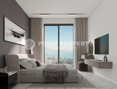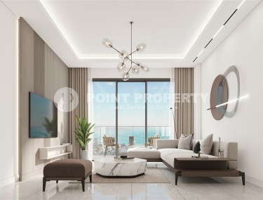 Прекрасные двухуровневые апартаменты с двумя видовыми террасами на Средиземное море, в жилом комплексе с красивым садом, в районе Конаклы