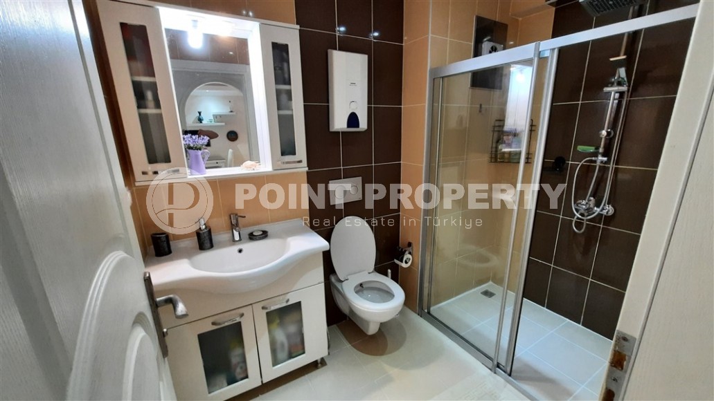 Выставлена на продажу квартира от собственника в Махмутларе по выгодной стоимости. Комплекс расположен в центральной части района, рядом с вторичным рынком и всего в 200 метрах от Средиземноморского побережья. Дом был построен в 2013 году, имеет небольшую территорию с наличием бассейна и зоны отдыха. Также есть генератор на случай отключения света и управляющая компания.