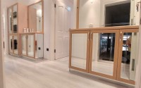 В квартире предусмотрены две спальни, гостиная с кухней, зонированной барной стойкой, и два санузла, один из которых оснащен ванной. Продуманный дизайн интерьера с элементами деревянной отделки создает уютную и гармоничную атмосферу.