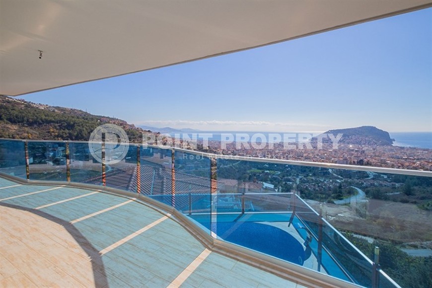Трехэтажная вилла, с панорамными видами, в чистовой отделке, с зеленым садом и бассейном, планировкой 7+1, в 3 километрах от моря, 2022 года постройки.