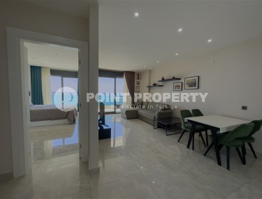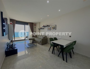 Роскошная меблированная квартира 1+1 на первой линии у моря в Махмутларе, с видом на море и широким спектром удобств.