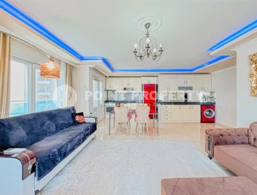 В престижном комплексе в центре Аланьи, в районе пляжа Кейкубат, представлена квартира планировки 1+1 площадью 48 м², 2023 года.