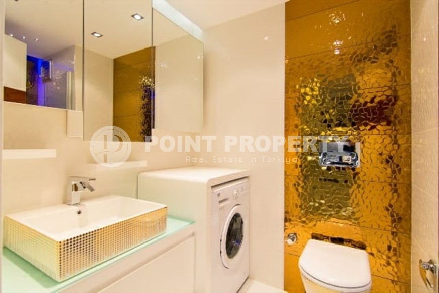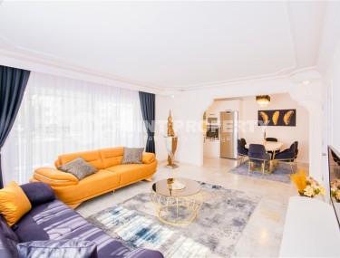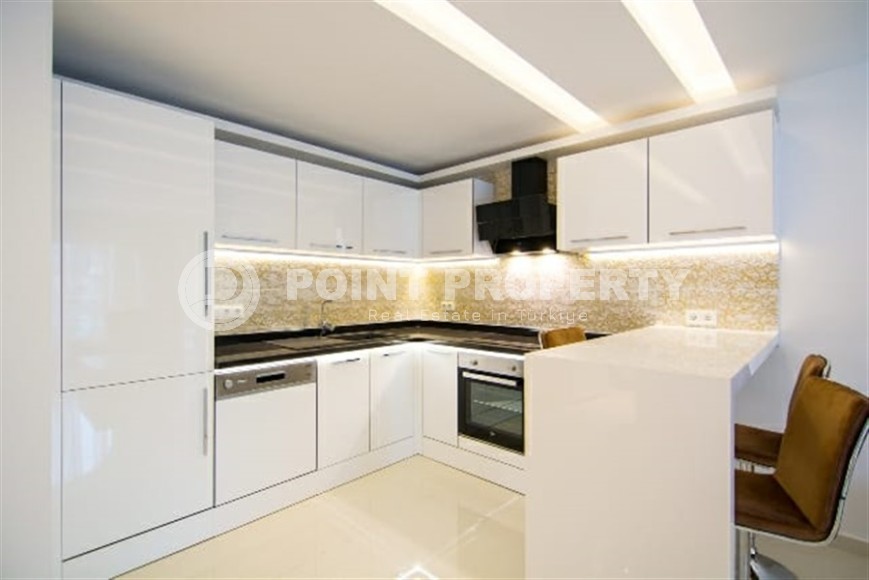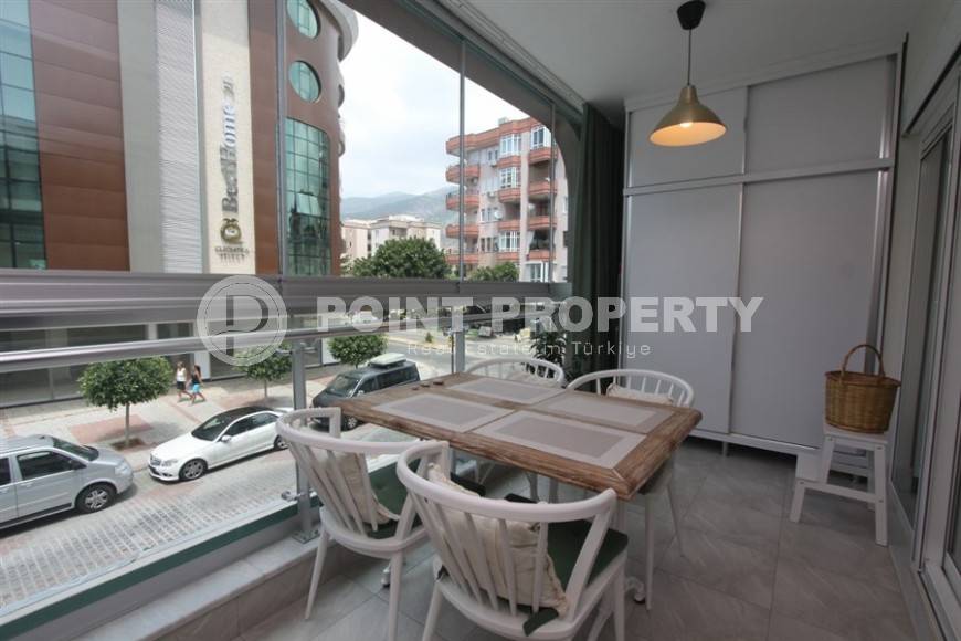 Каждый, кто хоть раз побывал в солнечной Аланьи, наверняка заметил, что центр курорта - особое место, овеянное духом романтики и многовековой истории. При этом тут прекрасно развита инфраструктура, что позволяет вести активную социальную жизнь круглый год. Если вам по душе такое сочетание, предлагаем вашему вниманию комфортабельную квартиру 1+1, общей площадью 65 м2, расположенную в нескольких минутах ходьбы от центра города, в благоустроенном жилом комплексе, построенном в 2020 году. Апартаменты находятся на 2-м этаже и имеют в планировке совмещенную с кухней гостиную, спальню, оснащенный душевой кабиной и стиральной машиной санузел, и просторный застекленный балкон, с видом на улицы города. К преимуществам квартиры относится и ее современный дизайн, с лаконичным светлым интерьером и максимально функциональным распределением пространства. Гостиная отделена от кухни высокой стойкой, используемой в качестве обеденного стола, и укомплектована массивным угловым диваном и практичным гарнитуром. Кухня, с массой вместительных секций для хранения продуктов, оснащена встроенным холодильником, посудомоечной машиной, сенсорной поверхностью и духовым шкафом. В спальне установлены мягкая кровать и оригинальные тумбы, а на большом застекленном балконе организована полноценная рекреационная зона, с диваном и обеденным столом.